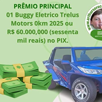 Compre um bilhete por apenas R$ 10,00 e concorra a um 01 Buggy Elétrico Trelus Motors 0Km 2025 ou R$ 60.000,00 (sessenta mil reais) no PIX.